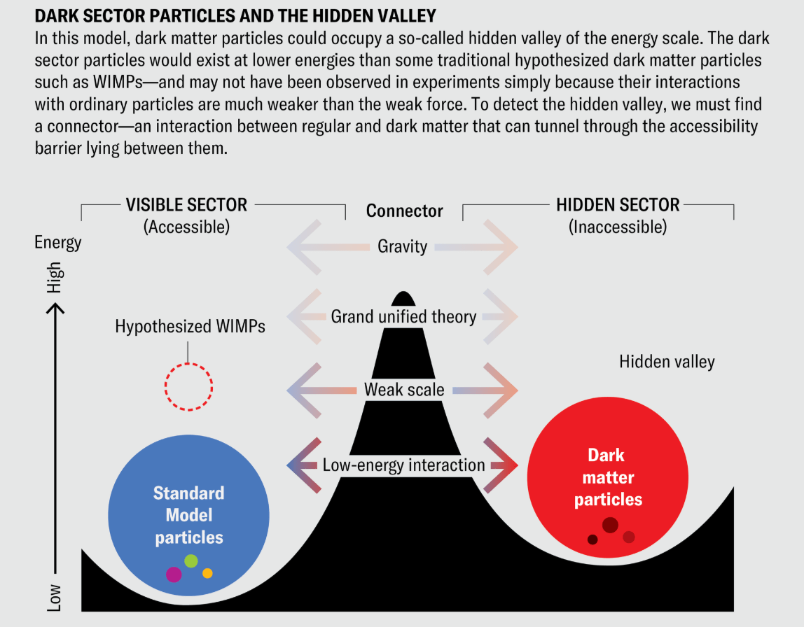 Esta abordagem contrariava a tendência dominante na física de altas energias, que se concentrava na construção de experimentos cada vez maiores para produzir partículas cada vez mais massivas. Em contraste, as partículas do vale oculto ocupariam território de energia muito mais baixa e poderiam ter passado despercebidas simplesmente porque suas interações com partículas ordinárias são muito mais fracas que a própria força fraca.