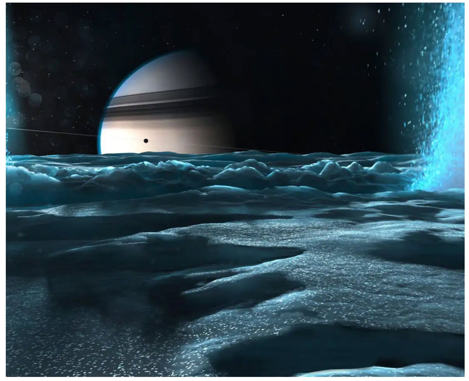 Europa e Encélado possuem vastos oceanos de água líquida sob suas crostas de gelo, mantidos aquecidos por forças de maré gravitacionais. A água líquida é considerada essencial para a vida como a conhecemos. Além disso, Encélado expele jatos de água de seu oceano interior para o espaço através de fissuras, oferecendo amostras diretas para análise. A missão Cassini já detectou moléculas orgânicas complexas nessas plumas, incluindo compostos semelhantes ao ácido húmico. A futura missão Europa Clipper buscará sinais de quiralidade molecular e combinações específicas de aminoácidos e ácidos graxos que seriam indicadores quase irrefutáveis de processos biológicos.