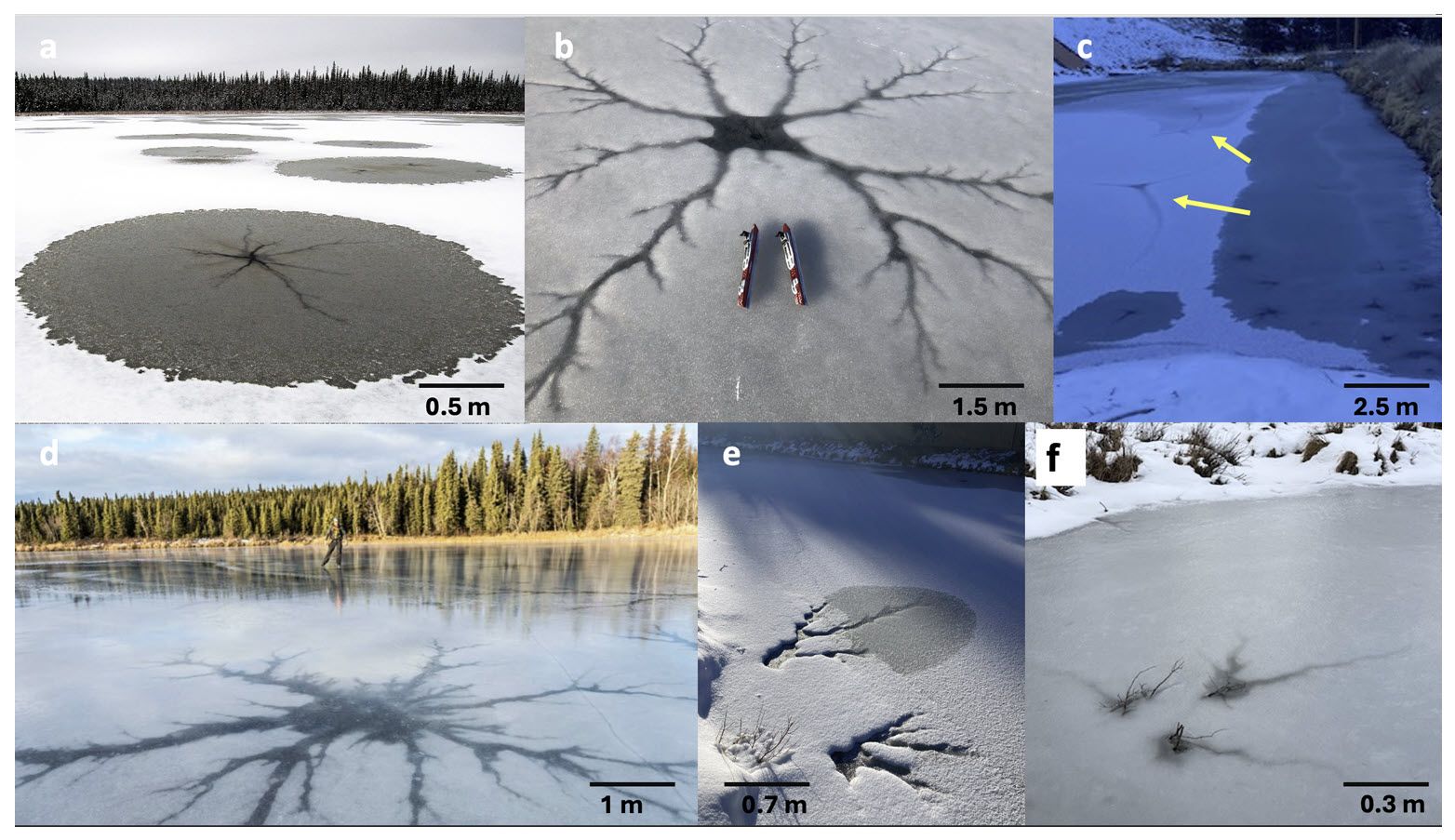 A equipe de pesquisa então voltou seus olhos para a Terra, em busca de análogos que pudessem esclarecer o processo de formação. A resposta foi encontrada em um fenômeno de inverno pouco estudado, mas visualmente impressionante: as “estrelas de lago”. Essas formações dendríticas (em forma de estrela) aparecem em lagos congelados quando a água de baixo do gelo sobe por um buraco e se espalha pela camada de neve ou lama na superfície. Historicamente, estas feições foram mencionadas já em 1845 nos escritos de Henry David Thoreau sobre Walden Pond, em Massachusetts, onde ele descreveu padrões misteriosos que apareciam no gelo durante o inverno.