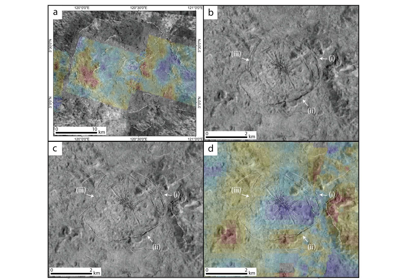 No entanto, a morfologia detalhada da feição não se encaixava perfeitamente com a de fraturas típicas observadas em outros locais de Europa. Os “braços” de Damhán Alla não parecem ser rachaduras profundas com paredes elevadas, mas sim áreas de baixo albedo (mais escuras), sem relevo perceptível, o que levou os cientistas a procurar por explicações alternativas. Além disso, a feição está localizada em uma depressão central dentro da cratera, cercada por materiais ondulantes que terminam em formas lobadas, morfologicamente semelhantes aos materiais de impacto derretido observados na cratera Occator no planeta anão Ceres. Esta semelhança geomorfológica sugeriu aos pesquisadores que o impacto que formou Manannán pode ter derretido uma quantidade significativa de gelo, criando condições únicas para a formação de Damhán Alla.