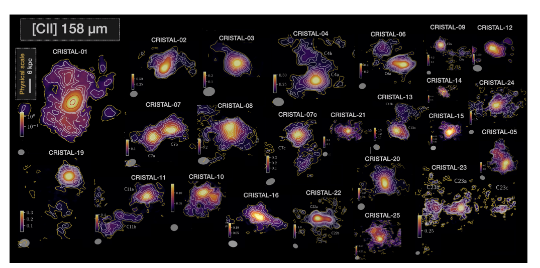 Os resultados obtidos revelaram uma diversidade morfológica e cinemática surpreendente entre essas galáxias primitivas. Contrariando expectativas anteriores de que as galáxias do universo primitivo seriam sistemas simples e desorganizados, o survey CRISTAL descobriu evidências de discos em rotação, sistemas em fusão, caudas de emissão indicativas de interações gravitacionais e formação estelar em aglomerados. Aproximadamente 50% das galáxias estudadas apresentaram evidências de rotação ordenada, sugerindo que estruturas discoidais já estavam presentes quando o universo tinha apenas um bilhão de anos.