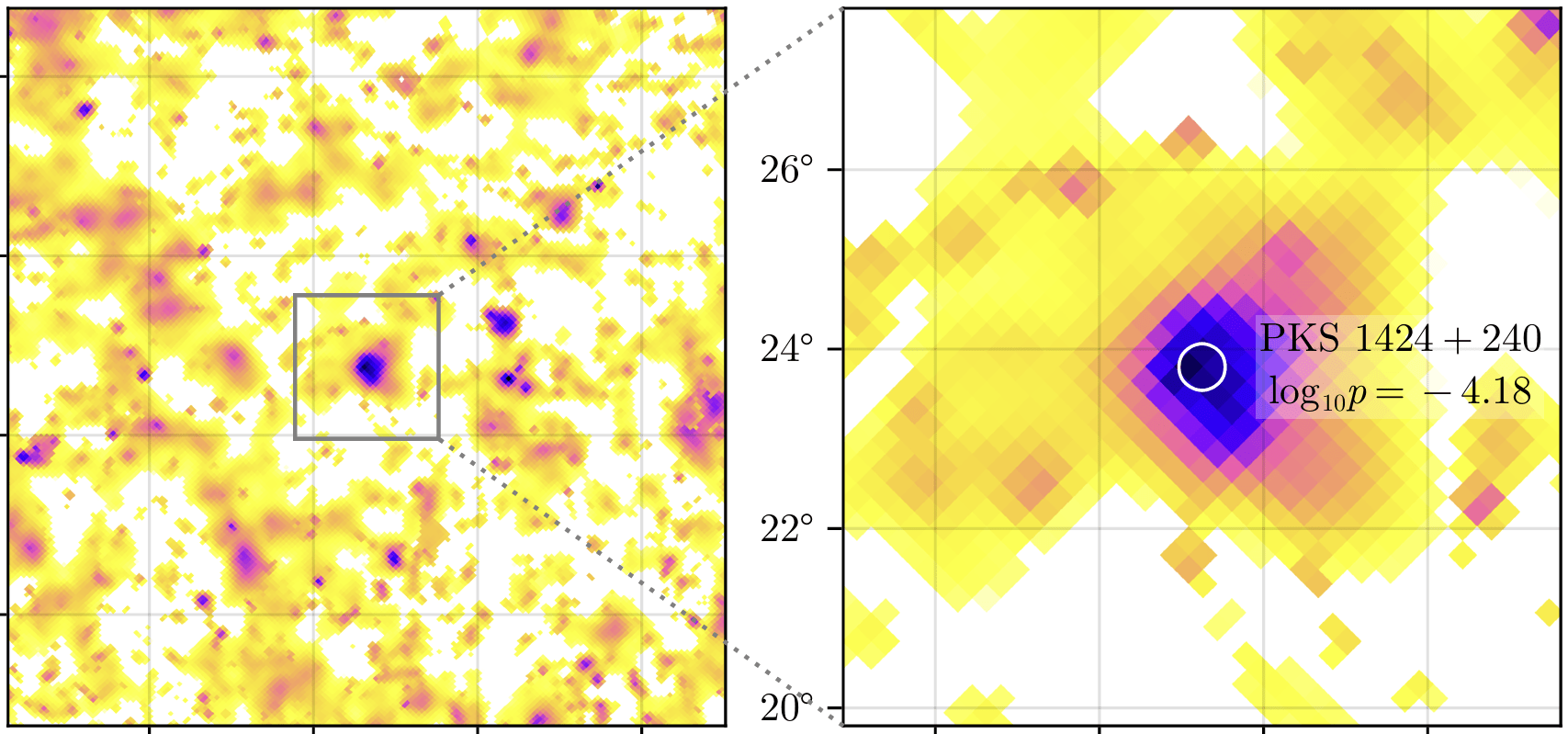 O objeto central desta pesquisa, o blazar PKS 1424+240 (também conhecido como OQ 240), já era conhecido por ser excepcional. Com um redshift de z = 0.605, ele é o blazar mais distante já detectado com emissão de raios gama de muito alta energia (VHE) em um estado de quiescência, ou seja, sem estar em um “surto” ou “flare” de energia. Mais ainda, ele foi identificado como a provável fonte do segundo pico de excesso de neutrinos no céu do hemisfério norte em uma análise de nove anos de dados do Observatório IceCube, um detector de neutrinos de vanguarda localizado no Polo Sul.