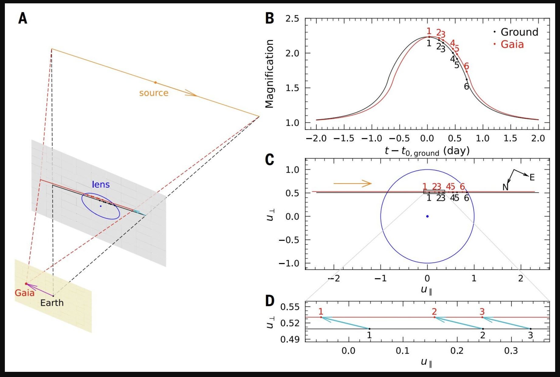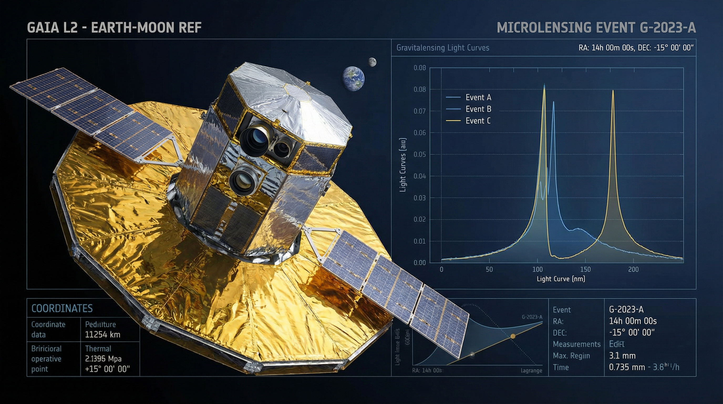 O satélite Gaia da Agência Espacial Europeia (ESA) desempenhou um papel absolutamente crucial nesta descoberta. Gaia orbita o Sol no ponto de Lagrange L2, a cerca de 1.5 milhão de quilômetros da Terra, e está mapeando as posições e movimentos de mais de um bilhão de estrelas na Via Láctea. Durante o evento de microlente, Gaia observou a mesma estrela fonte que os telescópios terrestres, mas de um ponto de vista ligeiramente diferente no espaço. Essa diferença de perspectiva, conhecida como paralaxe, fez com que Gaia visse o pico de amplificação da microlente aproximadamente 1.9 horas depois dos telescópios na Terra. Essa pequena diferença de tempo permitiu aos cientistas quebrar uma degenerescência fundamental que geralmente torna impossível distinguir entre um objeto de baixa massa próximo e um objeto de alta massa distante. Medindo a paralaxe da microlente com uma significância estatística superior a sete desvios padrão, a equipe conseguiu determinar com precisão sem precedentes tanto a massa (0.219 massas de Júpiter) quanto a distância (3.05 kiloparsecs) do planeta órfão. Sem os dados do Gaia, esta descoberta teria sido muito menos conclusiva.