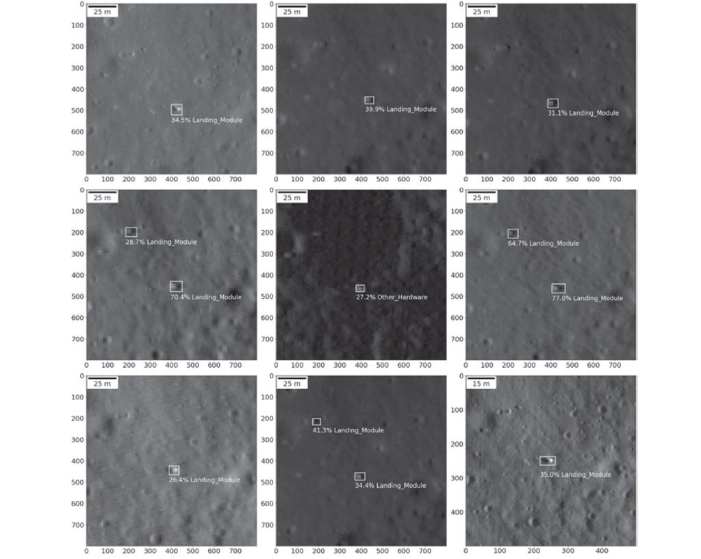 Um teste adicional com a Surveyor 7, uma sonda americana que pousou em janeiro de 1968 em um terreno repleto de rochas e pedregulhos, reforçou essa conclusão. Mesmo sem retreinamento, o YOLO-ETA identificou a Surveyor 7 com confiança superior a 58 por cento em meio a um campo de pedras que tornaria a detecção manual extremamente difícil. O algoritmo parecia estar decodificando os padrões de sombra distintos da espaçonave mesmo entre os pedregulhos circundantes.