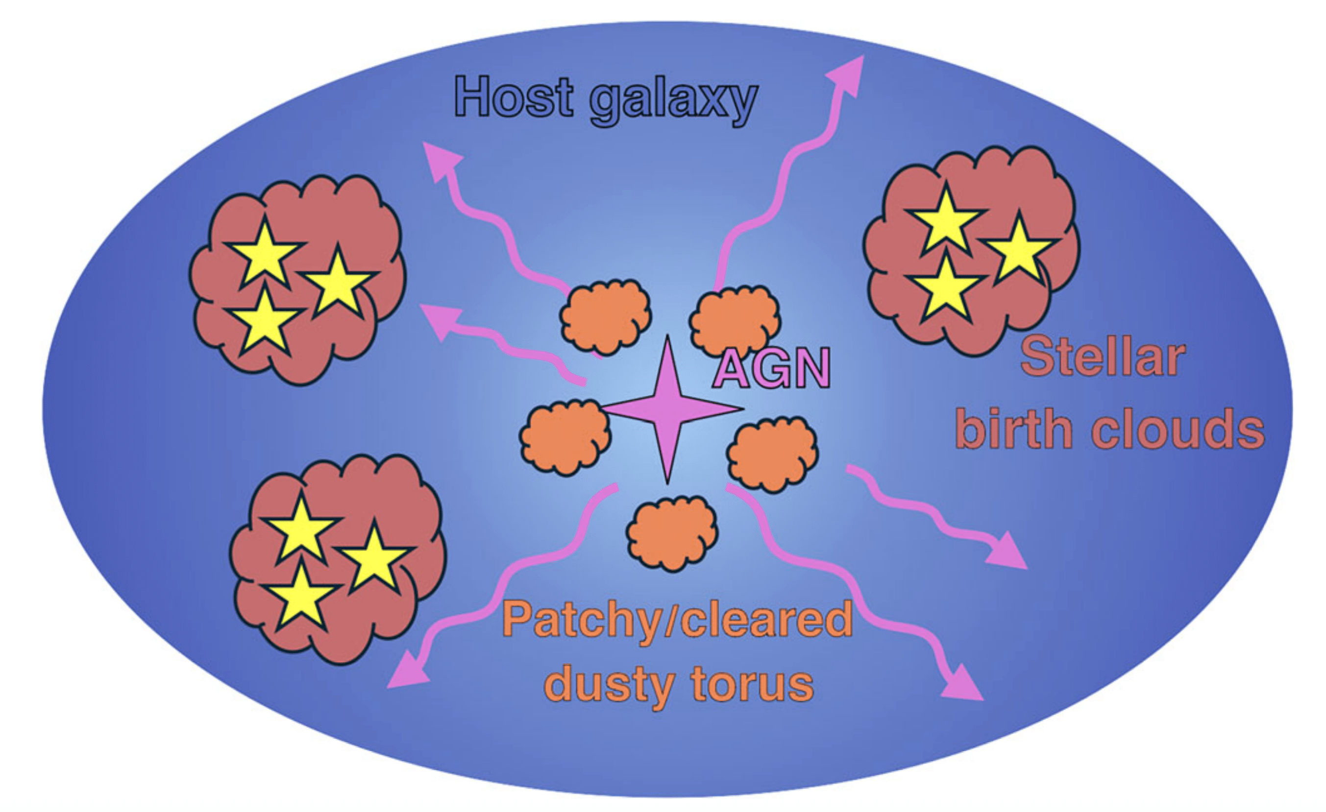 A energia emitida por este AGN é tão intensa que domina a luz da própria galáxia hospedeira. Este fenômeno ocorre porque, à medida que a matéria cai em direção ao buraco negro, ela forma um disco de acreção giratório. O atrito e as forças magnéticas neste disco aquecem o gás a temperaturas extremas, fazendo com que ele brilhe intensamente em todo o espectro eletromagnético. A radiação emitida pode ser milhares de vezes mais brilhante do que toda a luz combinada das estrelas da galáxia, tornando o AGN visível mesmo a distâncias cosmológicas.