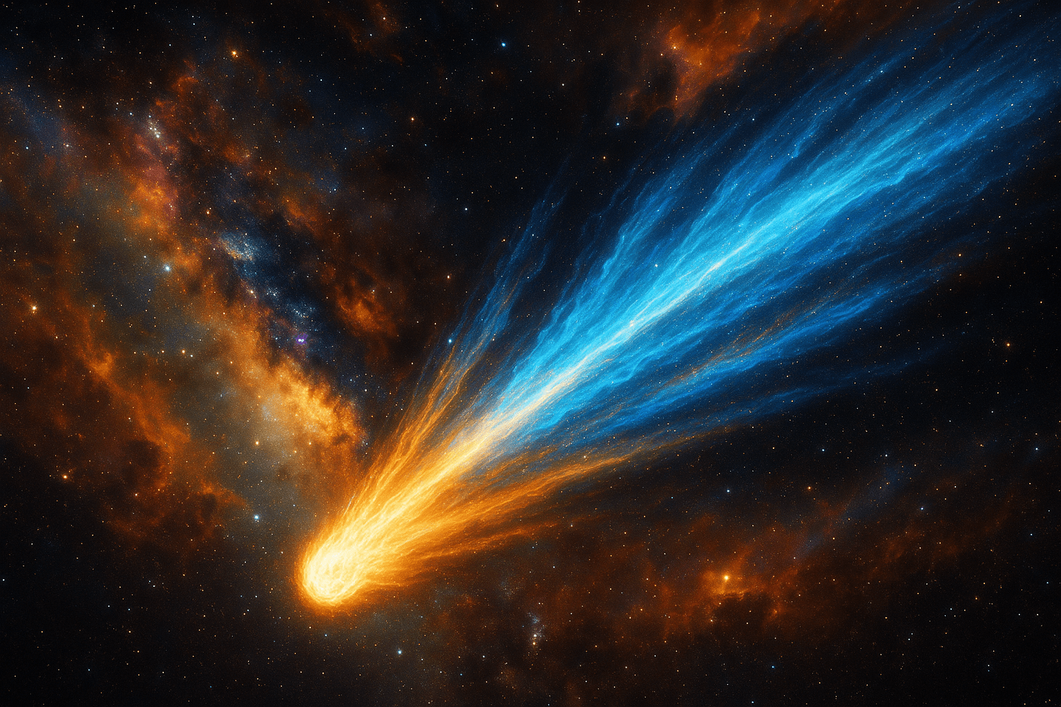 A análise quantitativa aprofundou ainda mais a descoberta. Os cientistas usaram modelos computacionais para calcular a taxa de produção desses gases, uma medida que quantifica a massa de material que o núcleo do cometa está ejetando para o espaço a cada segundo. Para o 3I/ATLAS, as taxas de produção calculadas para as moléculas de carbono ficaram na ordem de 10^25 moléculas por segundo. Mais importante do que o valor absoluto, foram as proporções entre as taxas de produção. A astronomia cometária classifica os cometas do nosso sistema em diferentes famílias com base nessas proporções, principalmente entre os “típicos em carbono” e os “esgotados em carbono”. As razões de produção do 3I/ATLAS o colocaram firmemente na categoria de “cometa típico”. Esta classificação, aparentemente simples, é uma forte evidência de que os blocos de construção químicos que formaram este cometa em seu sistema estelar de origem não são fundamentalmente diferentes dos que formaram os cometas em nossa própria nuvem de Oort.