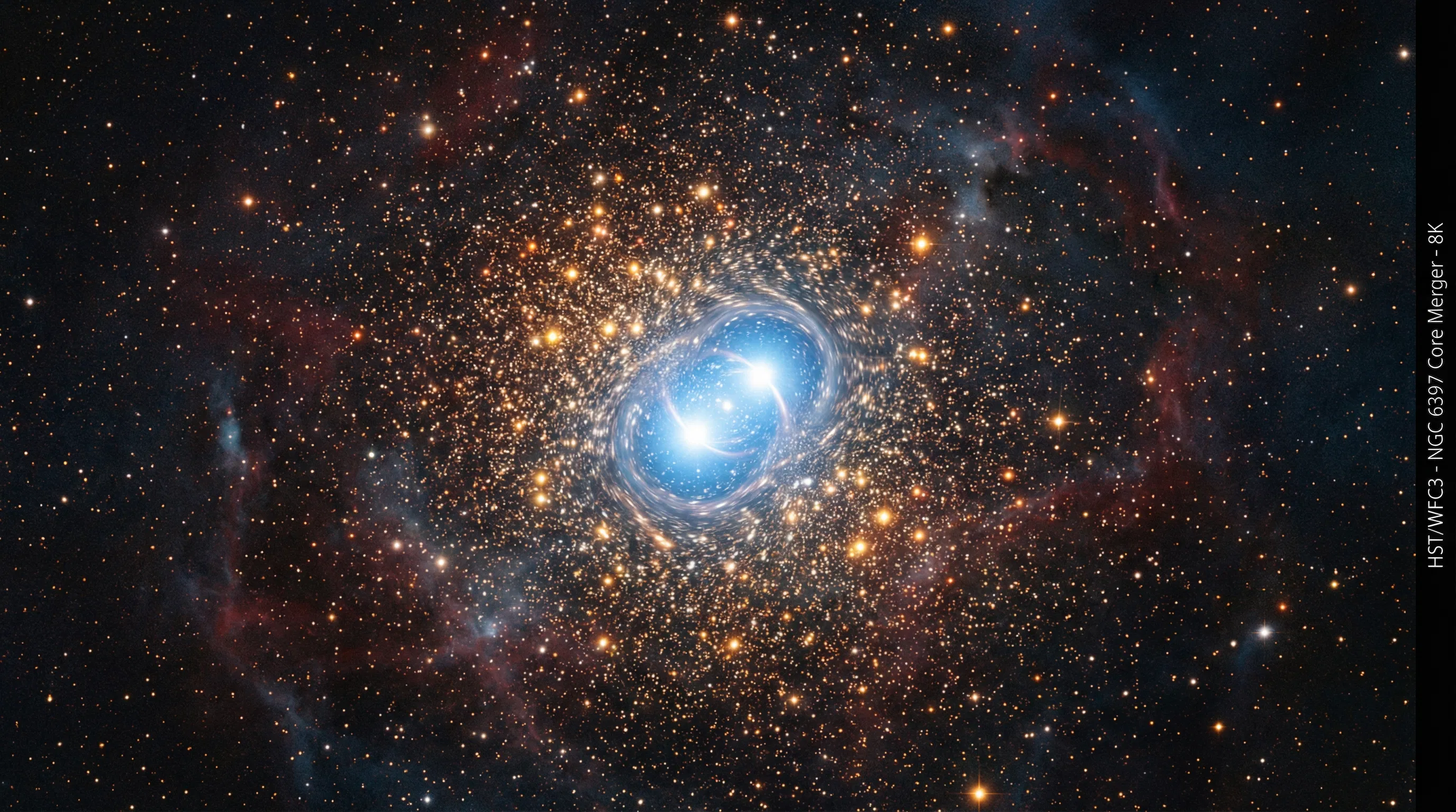 Nos aglomerados globulares, a física da separação de massa faz com que os objetos mais pesados — incluindo buracos negros — afundem para o centro do aglomerado por meio de um processo chamado segregação de massa. Lá no núcleo denso, interações dinâmicas de três corpos tendem a expulsar o menos massivo e deixar os dois mais massivos em uma órbita ligada. O resultado é uma preferência marcante por sistemas com massas comparáveis — razão de massa próxima a 1, ou seja, buracos negros de massas semelhantes se fundindo. E é exatamente isso que os dados do GWTC-4 mostram para a segunda subpopulação: forte preferência por massas iguais, com 84% dos sistemas tendo razão de massa maior que 0,7. Os spins desses objetos, por sua vez, têm orientações aproximadamente aleatórias em relação à órbita — porque no ambiente caótico de um aglomerado globular, as fusões dinâmicas embaralham as direções dos eixos de rotação, sem a influência sincronizadora das marés que existe na evolução isolada. Metade dos sistemas tem spin efetivo positivo e metade tem negativo, distribuição que é exatamente o que se espera de orientações isotrópicas. A taxa local de fusões desse subgrupo é de 2,2 fusões por gigaparsec cúbico por ano.