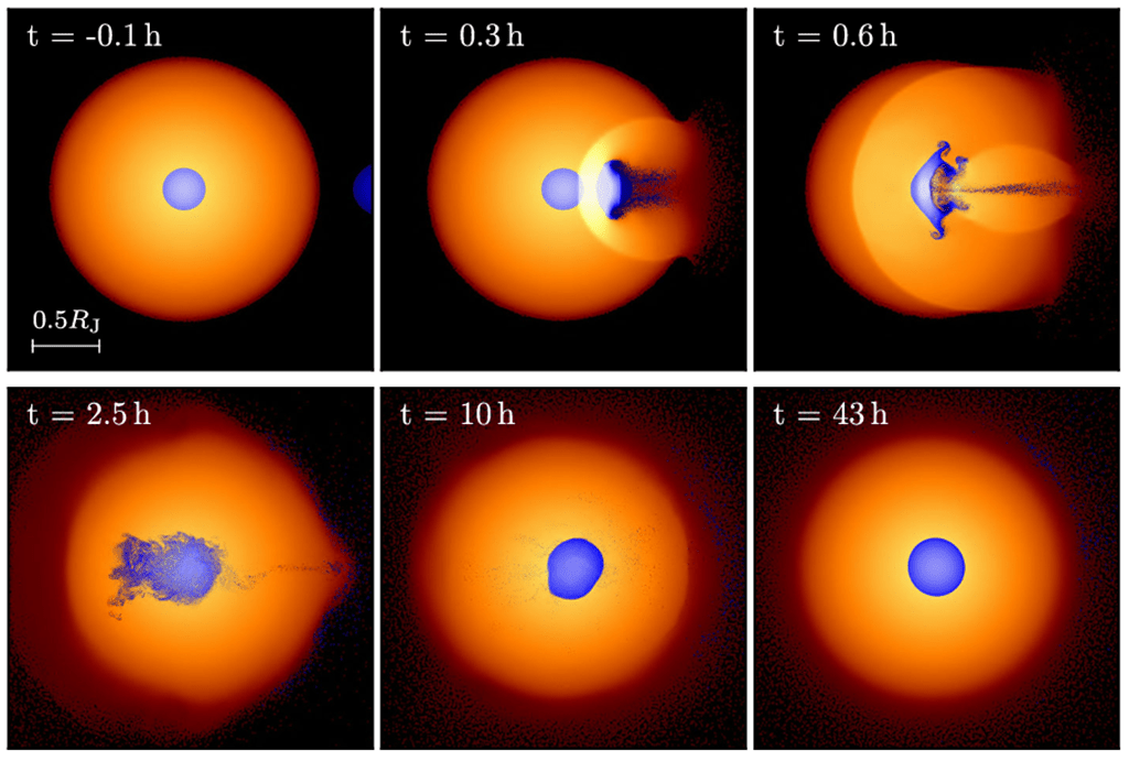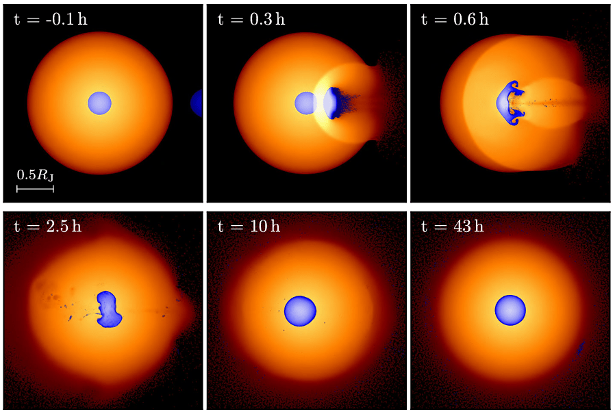 Em primeiro lugar, a hipótese do impacto gigante como mecanismo para a formação do núcleo diluído de Júpiter parece ser significativamente enfraquecida. O cenário que a sustentava – um impacto frontal de um corpo de 10 M⊕ em um Júpiter quase totalmente formado, mas com apenas metade de seus elementos pesados – já era considerado extremamente específico e de baixa probabilidade. A incapacidade de reproduzir um núcleo diluído mesmo com métodos numéricos mais avançados e sob condições otimizadas sugere que tal evento não seria o responsável.