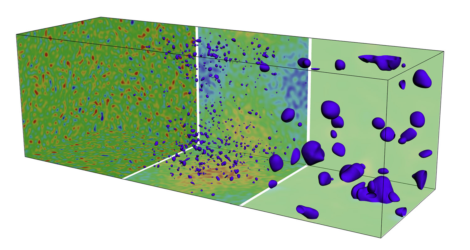 • Transições de Fase e Defeitos Topológicos: À medida que o universo esfriou, ele provavelmente passou por transições de fase que deram origem às forças fundamentais que conhecemos hoje. Durante essas transições, podem ter surgido defeitos topológicos, como paredes de domínio, cordas cósmicas e monopólos, dependendo da simetria do vácuo. A RN tem sido utilizada para estudar a evolução de bolhas de vácuo e como as inhomogeneidades podem preencher o “landscape” de múltiplos vácuos. A dinâmica dessas bolhas pode atuar como sementes para buracos negros supermassivos e aumentar a formação de buracos negros binários. Embora as cordas cósmicas sejam fenômenos importantes que também geram OGs, a enorme separação de escalas envolvidas torna sua simulação em RN um desafio contínuo, muitas vezes exigindo aproximações simplificadas. A pesquisa está em andamento para desenvolver técnicas mais sofisticadas para modelar esses objetos.