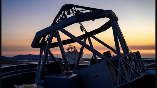 Essa bela imagem divulgada pelo ESO mostra o pôr do Sol sobre o Observatório do Paranal, local onde está instalado o Very Large Telescope (VLT). O céu em tons de...