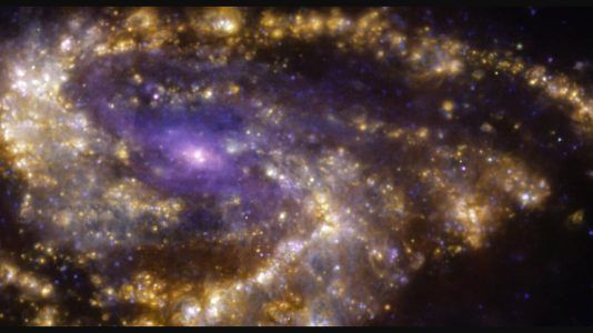 A foto acima mostra a galáxia NGC 3627, também conhecida por Messier 66, localizada a aproximadamente 31 milhões de anos-luz de distância da Terra na constelação do Leão...