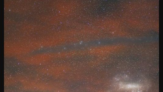 No céu acima de dois Telescópios Auxiliares do Very Large Telescope (VLT) do ESO, podemos ver um par de formas etéreas. Tratam-se da Grande e da Pequena Nuvens de...