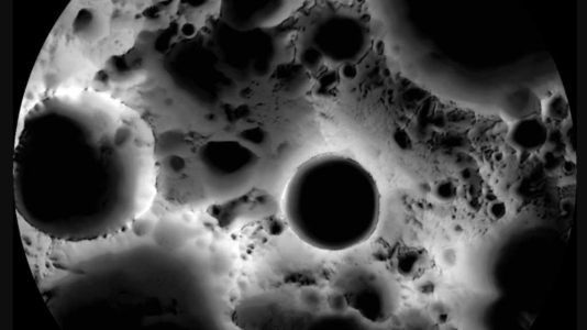 Esta imagem da superfície da Lua foi tirada com um microscópio? Não – é um mapa de iluminação multitemporal feito com uma câmera grande angular. Para criá-lo...