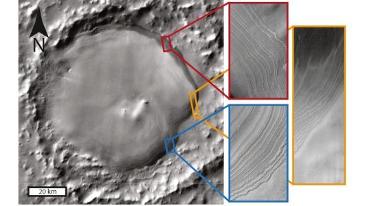 Depósitos recém-descobertos de camadas de gelo em crateras espalhadas pelo hemisfério sul de Marte fornecem informações sobre como a orientação do planeta controlou o...