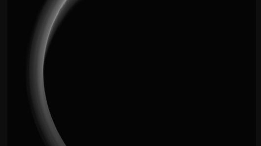 O lado noturno de Plutão abrange esta cena sombria . Na impressionante perspectiva espacial, o Sol está a 4.9 bilhões de quilômetros (quase 4.5 horas-luz) atrás do mundo...