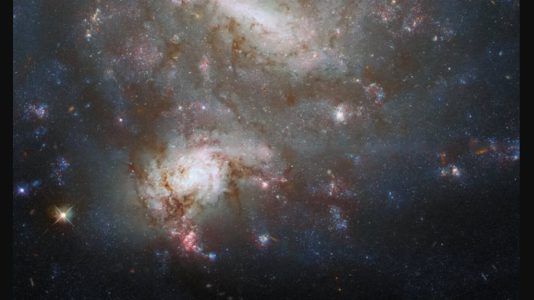 As galáxias gêmeas NGC 4496A e NGC 4496B dominam o quadro nesta imagem do Telescópio Espacial Hubble da NASA/ESA. Ambas as galáxias estão na constelação de Virgem, mas...