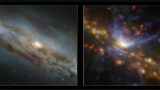 Situada a cerca de 70 milhões de anos-luz de distância da Terra na direção da constelação do Grou, encontra-se a galáxia NGC 7582 — uma galáxia em espiral que abriga no...