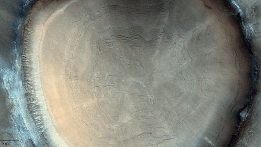 Essa bela cratera registrada em Marte pode ser facilmente confundido com um toco de árvore com anéis concêntricos característicos. Na verdade, é uma impressionante visão...