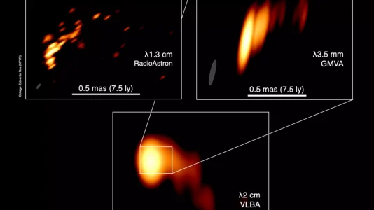 Uma equipe internacional, incluindo vários pesquisadores do Instituto Max Planck de Radioastronomia em Bonn, mapeou a galáxia ativa OJ 287 com uma resolução angular de...