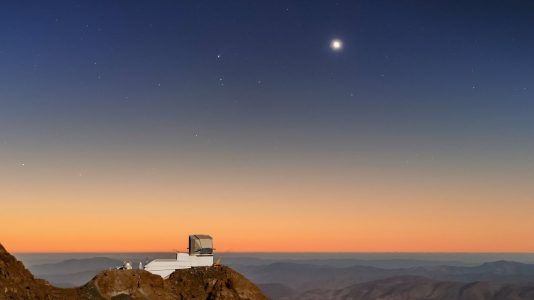 O cometa Leonard (C/2021 A1) foi lindamente capturado voando acima do Observatório Vera C. Rubin, um programa do NOIRLab da NSF, nesta imagem da do início da noite...