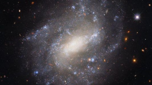 A galáxia espiral solitária UGC 9391 é mostrada nessa imagem feita pelo Telescópio Espacial Hubble da NASA e da ESA usando a sua Wide Field Camera 3. Essa galáxia está...