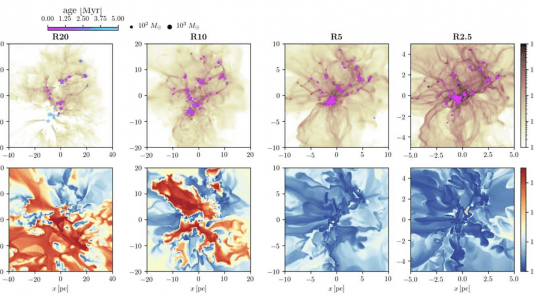 Quando nuvens moleculares empoeiradas colapsam para formar estrelas, uma série de forças competitivas assumem o palco. A gravidade puxa as coisas para o interior...