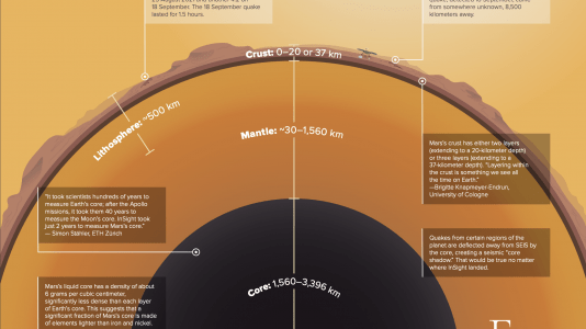 Com mais de 700 sismos marcianos, os chamados martemotos, detectados até o momento, os cientistas começam a ter uma uma imagem cada vez mais clara da estrutura interna...