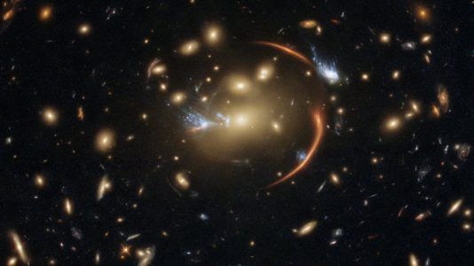 O centro dessa imagem feita pelo Telescópio Espacial Hubble das agências espaciais NASA e ESA é emoldurada por arcos que são o resultado de um forte efeito de lente...
