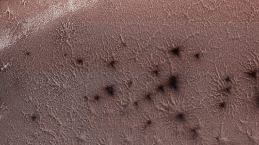 Os cientistas no Reino Unido brincaram com um pedaço de gelo seco para tentar entender o que está por trás dos estranhos padrões alienígenas conhecidos como “aranhas...