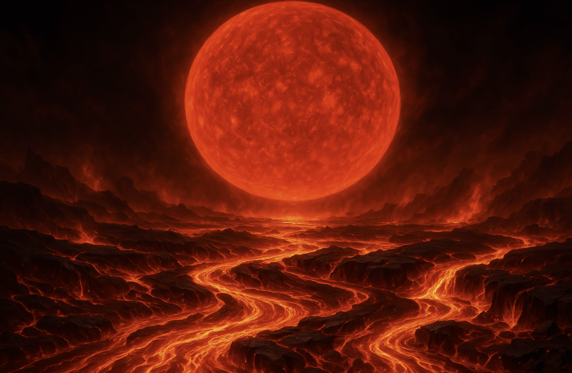 No entanto, mesmo que a Terra sobreviva fisicamente à expansão solar, ela certamente não permanecerá habitável. A temperatura na superfície terrestre atingirá aproximadamente 1.300 graus Celsius – quente o suficiente para derreter chumbo e transformar rochas em lava. Durante o dia, a superfície do planeta se tornará um oceano de rocha derretida, criando um mundo infernal que fará Vênus parecer um paraíso tropical em comparação. Além disso, a atmosfera terrestre será completamente perdida para o espaço devido às temperaturas extremas, deixando nosso planeta como uma esfera rochosa nua e estéril orbitando uma estrela gigante e moribunda.