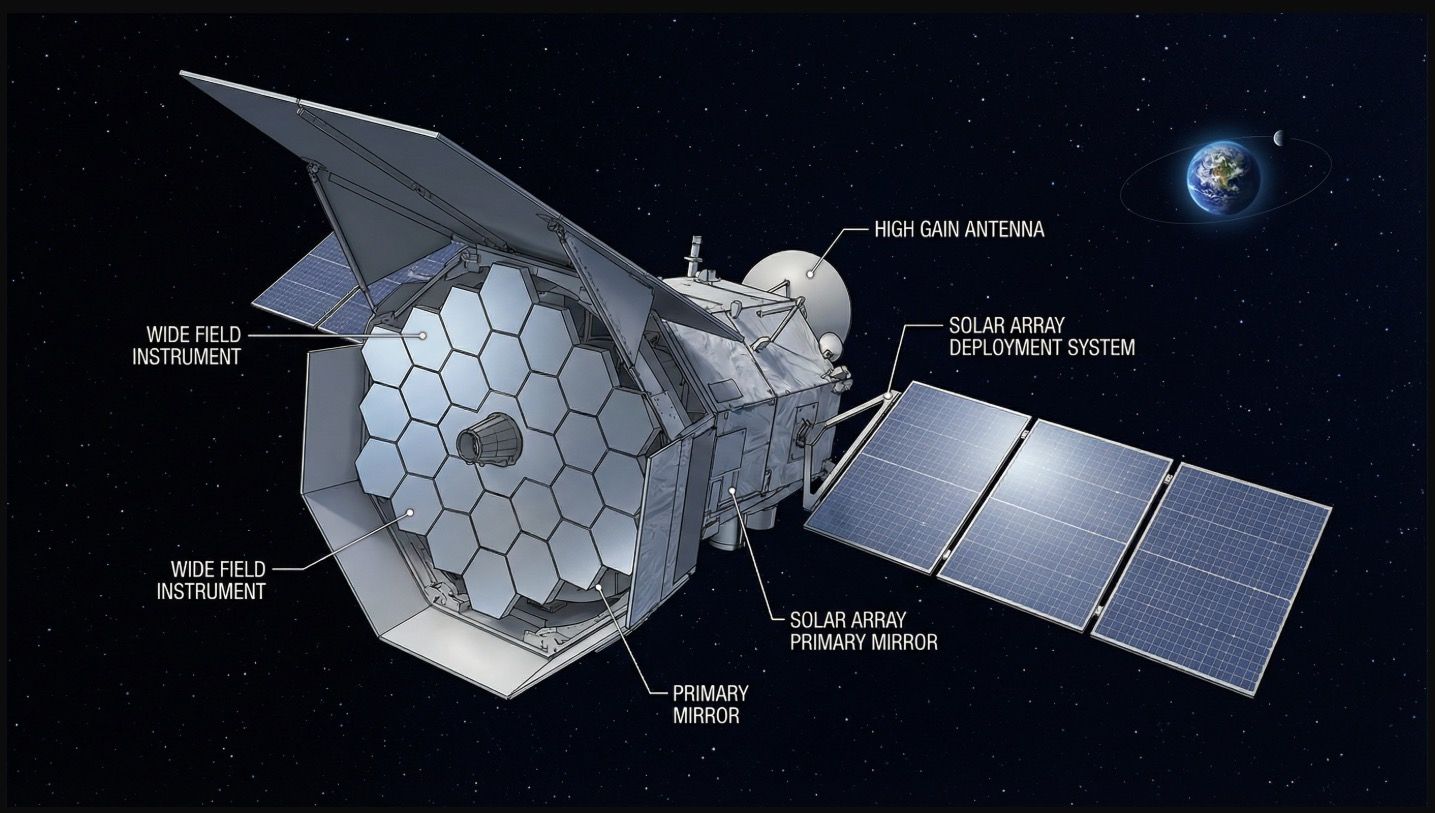 O Telescópio Espacial Nancy Grace Roman, nomeado em homenagem à “mãe do Hubble”, a astrônoma Nancy Grace Roman que foi fundamental para o desenvolvimento do Telescópio Espacial Hubble, representa um salto significativo nas capacidades observacionais da astronomia espacial. Com um espelho primário de 2,4 metros de diâmetro — o mesmo tamanho do Hubble — o Roman terá um campo de visão 100 vezes maior, permitindo mapear vastas áreas do céu com eficiência sem precedentes.