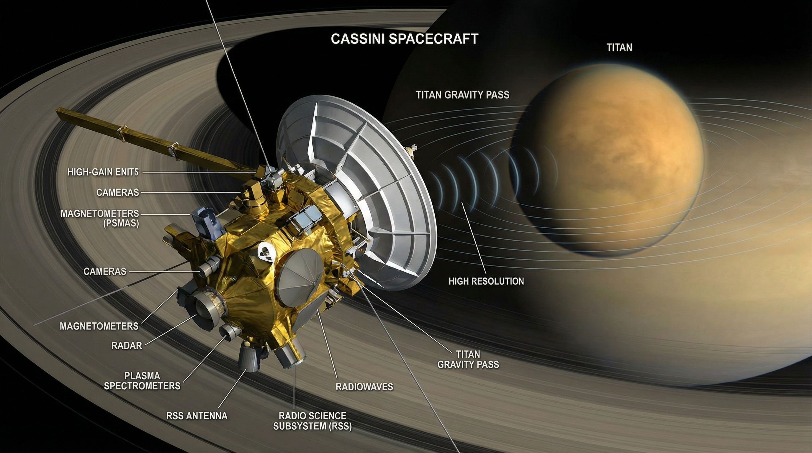 Ao longo de sua missão, a Cassini dedicou dez de seus 124 sobrevoos de Titã especificamente para medir seu campo gravitacional com a maior precisão possível. Esses sobrevoos foram cuidadosamente planejados para passar em diferentes ângulos e distâncias, permitindo aos cientistas construir um mapa tridimensional detalhado de como a massa está distribuída dentro da lua. Os dados coletados durante esses sobrevoos formaram a base para as análises anteriores que sugeriram a existência de um oceano subsuperficial.
