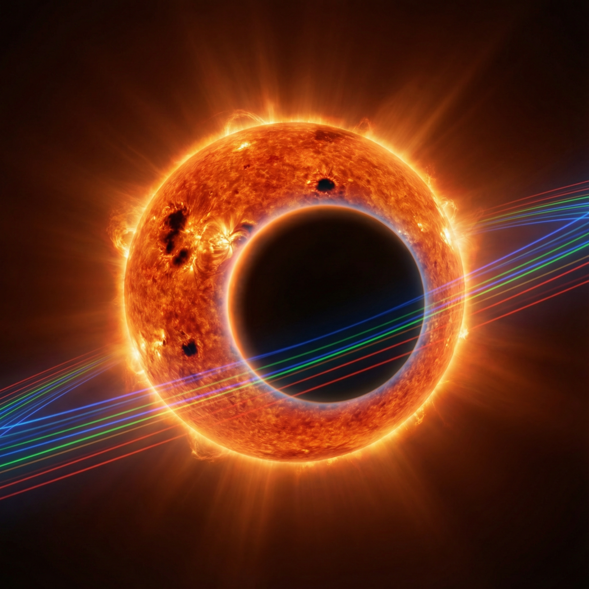 A investigação sobre a atmosfera de um exoplaneta a trilhões de quilômetros de distância é uma proeza monumental da engenharia e da ciência. A técnica utilizada, conhecida como espectroscopia de transmissão, envolve observar cuidadosamente a luz da estrela hospedeira enquanto o planeta passa à sua frente durante um evento chamado de trânsito planetário. Durante esse breve momento, que pode durar de minutos a algumas horas dependendo da órbita do planeta, uma pequena fração da luz estelar atravessa a atmosfera do planeta antes de chegar até nós. Se o planeta possui uma atmosfera, os gases presentes nela deixarão uma “impressão digital” química no espectro de luz observado, absorvendo comprimentos de onda específicos característicos de cada molécula. É como se cada gás tivesse seu próprio código de barras luminoso, permitindo aos cientistas identificar sua presença mesmo a distâncias astronômicas.